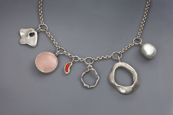 Necklace - silver, rose quartz, coral.